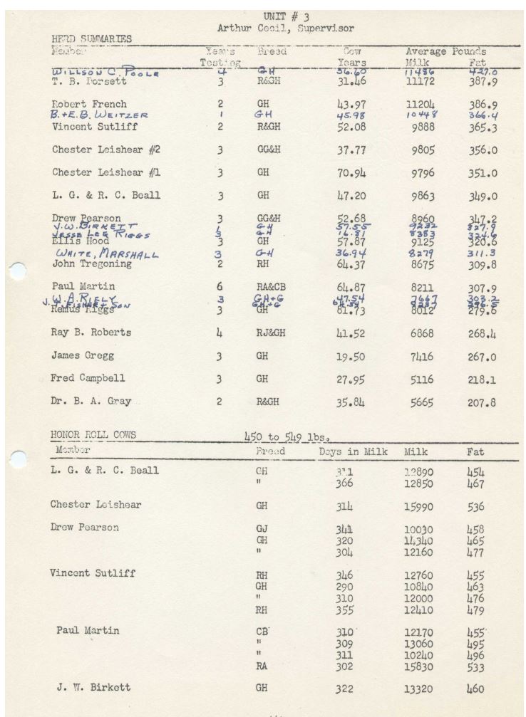 Birkett received 1952 MD-VA Milk Producers Association Production Bonus.