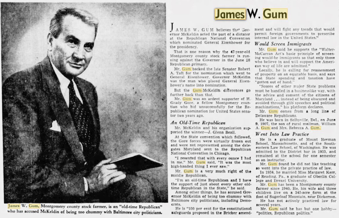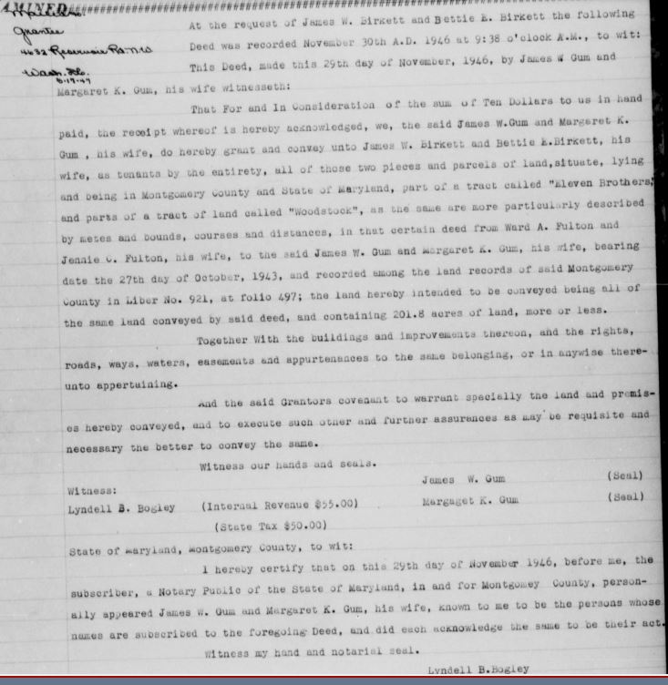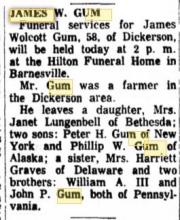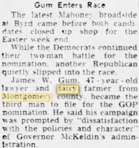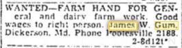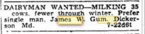 James W. Gum appears to have had a dairy operation in the Cedar Grove area after he sold his Dickerson farm to Birkett.